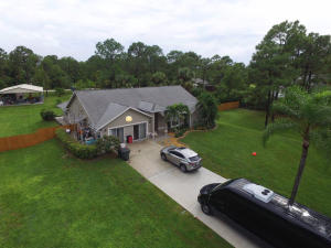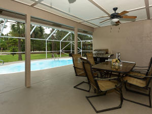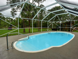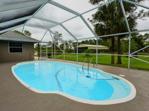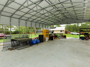 Very nice CBS home sits on a 2.2 acre lot, on a paved road with city water! Long concrete drive plus 10x50 slab with plenty of room for an RV or boat. Tile throughout the home, and newer wood like tile in 2nd bedroom. Master b/r has an extra sitting rm/workout rm, or nursery attached for lots of space! 2nd Bath is totally remodeled and serves as cabana bath also. Ktchen has granite counters, SS appliances, high hat lighting, and a pass through window to the patio. French doors lead from the dining room to the patio and pool area. The pool is salt water with a new pump and equipment. On the back acre is 50x30 metal carport - could be enclosed and used for a garage, equestrian purposes, or many other functions - plus a 10x10 metal shed.More features incl new electric gate to drive, seam