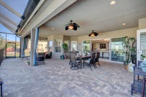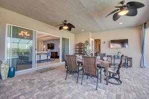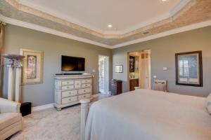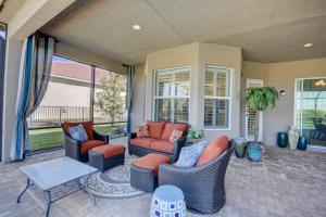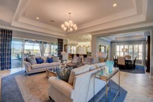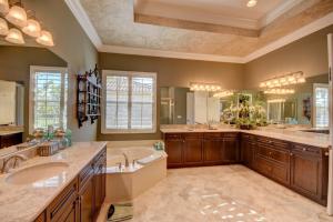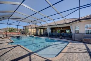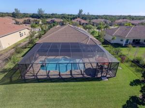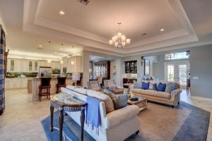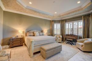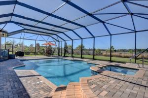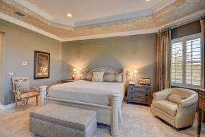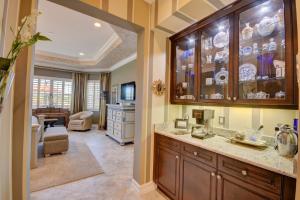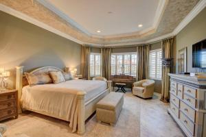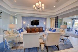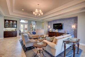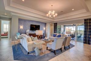 Absolutely stunning Magnolia model with 3 Bedrooms with 3.5 baths plus a club room perfect to a den, theater room or man cave. From the moment you walk up the enlarged circular driveway the exceptional features and upgrades are on display. Relish the tile on the diagonal with seamless grout, coffered tray ceilings, extensive crown molding, plantation shutters and custom drapes, upgraded chandeliers, pendants, sconces and fans. Enjoy the coffee service and wet bar in the master bedroom as you start and end your day. Cook to your hearts content in this upgraded granite kitchen and then head outside through the custom door to the expanded 20' by 40' covered lanai offering multiple dining and lounging options. Enjoy the over sized heated pool and spa. Perfection has an address!!