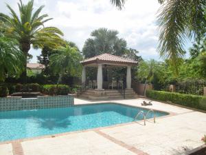 WELCOME TO YOUR OWN SHANGRI LA! Located on an over 1/4 acre incredible lot! When you are entertaining around the huge pool, magnificent Gazebo or special BBQ area your guests will think that they are in an intimate resort! This unique home sits on what is probably the finest and most impressive lot in all of Boca Pointe! The house has been quality updated in exquisite taste. This is a rare La Palma model with a green house wall family room off an impressive kitchen with unique Quartz counter tops. The master suite is on the first floor with an absolutely breath taking master bathroom with onyx counters and an amazing walk-in closet. There are 2 other master closets.2 upstairs large bedrooms share an over sized 2 sink bathroom and a loft.