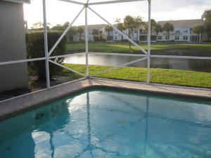 Wonderful opportunity to purchase this lovely pool home with a magnificent water and golf course view. Enjoy the sunsets from your screened pool and patio. Very popular floor plan with a separate master suite, formal living and dining room. The spacious kitchen opens to a breakfast nook and large family room all with pool and water views. Just steps to the community pool. Newer roof. Close to shopping and major highway. Convenient to the restaurants and activities of both Boca Raton and Delray Beach. No equity club required.