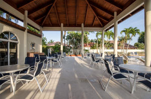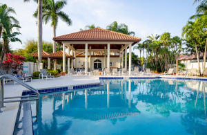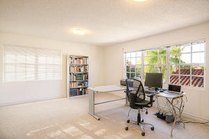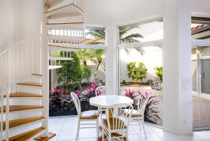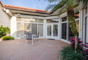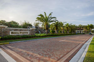 Exceptionally maintained & spotless (first owner!) courtyard home in exclusive guard-gated Boca Pointe. Spacious and private, this sanctuary features dual master bedrooms, one upstairs and one downstairs, each with walk-in closet and en-suite private bathroom. Bonus storage/hobby room! Vaulted ceilings with floor to ceiling windows open kitchen & living areas to a private tropical courtyard & patio. Back yard faces lake, gentle eastern sun. Full house roll-down shutters and a newer roof (2014). Via Stel (within Boca Pointe) is an intimate circle of 90 homes and has an impeccable community pool area. The low monthly maintenance fee includes lawn care, alarm system monitoring, and cable. Boca Pointe has an OPTIONAL country club program offering flexible memberships for those interested.