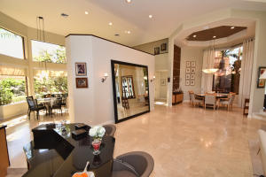 Wait to you see this contemporary home in the exclusive subdivision of Vintage Isles, located in the award winning Country Club at Broken Sound. This amazing home features an open floor plan, high volume ceilings, 2 newer A/C's, new pool heater, gas stove and barbecue, large windows throughout, tons of light, lots of walk in closets, marble floors, a beautiful custom built office, remodeled baths, kitchen open to the family room, and best of all, a beautiful back yard with a lake and golf course view. This one you will not want to miss!