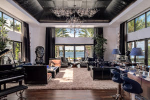 Iconic architect, Milton Klein, created this custom contemporary on 200' of PB's lakefront. At 21' above sea level, it boasts the most expansive water views in all of PB. Its many amenities include: deep water dock, infinity pool, 2 outdoor kitchens, home theatre, full spa, 5,000 bottle wine room, impact glass & full house generator. Turnkey & fully furnished.