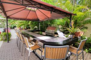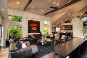 Be inspired by this truly unique Ron Caster designed home featuring 3 bedrooms, 3.5 baths and an oversized lot with a zen tropical oasis backyard with pool and summer kitchen. The home is being sold turnkey. Just pack your bags and move in. Kitchen features 2 sets of appliances.