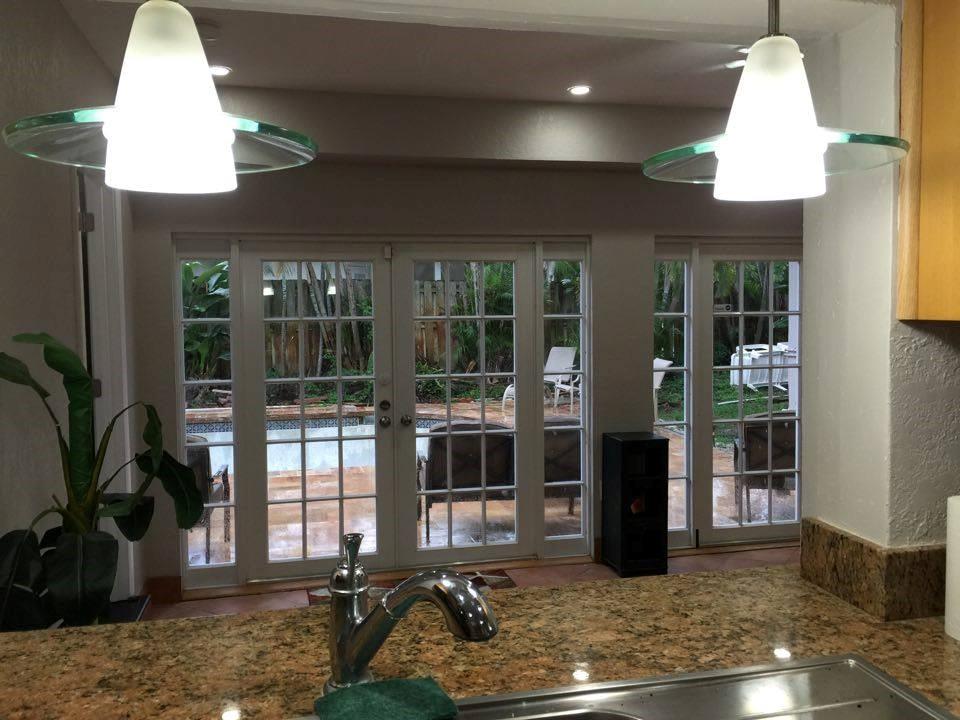 Beautifully updated & ready for move in. Nice outdoor area with Lanai for entertaining & recreation. New dark wood floors in the Living Room & all of the bedrooms. Mexican tile in the Dining Area, Kitchen, Family Room & Hallways. Stainless & Granite in the open kitchen. Washer & Dryer in the 1 car garage. Travertine tile pool deck. New Roof, AC & Water Heater, upgraded Electric & Hi-hats. Freshly painted in & out, Circular drive, Corner lot, Fully fenced back yard, New Diamond Brite & Termite Warranty.