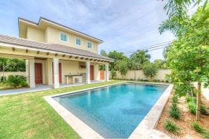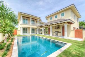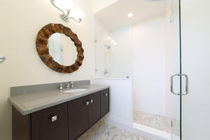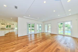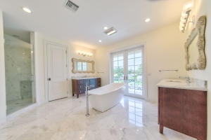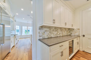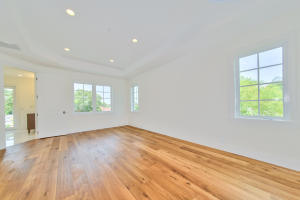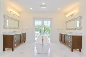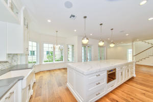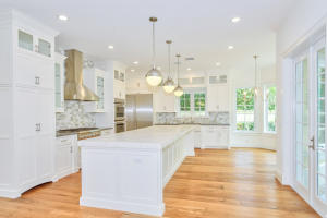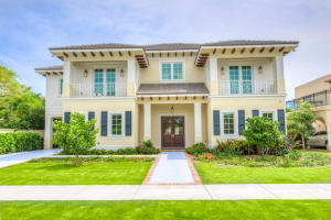 Luxury sports a fresh look in this brand new, custom-built, 4 BR, 4.5 BTH South Indies Plantation-style estate, nestled in the Southend, one block from the Intracoastal. High ceilings and an open plan flow from the moment you enter the double mahogany entrance doors. European plank wood floors, marble countertops and an oversized island with storage grace the Chef's kitchen, featuring natural gas Thermador professional appliances and a breakfast nook with a garden view. The formal dining room hosts your entertaining or a candlelit dinner.Upstairs, the spacious master suite features a comfortable sitting area or office with a private balcony. A French door opens into the master bath, with designer elements - a freestanding modern bathtub...