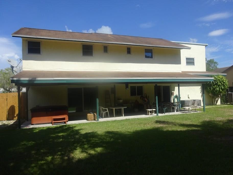 Large family home situated in well maintained community with no HOA! Brand new split central A/C (upstairs/downstairs) while conserving energy & saving $$. Double pane storm windows/sliding doors thru out. Hurricane braces included for 2-car garage & hurricane panels for front door. Newer front exterior door w/oval glass & sidelights. Large fenced backyard Hot tub stays! Formal dining room has new solid wood dble French doors, Brand new tile shower in master bath w/glass surround. New carpet in bdrms!