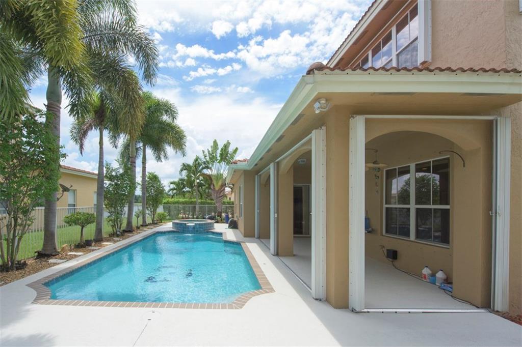 Spectacularly upgraded 2 story home with remodeled kitchen featuring granite, stainless appliances & gorgeous wood cabinets. Spacious master bedroom (1st floor) has 2 walk-in custom cabinet closets. Master bath has dual sinks, bidet & Jacuzzi tub. Huge loft-playroom. Heated pool with salt system & spa has wireless remote control. Hurricane shutters- all accordion upstairs. Tile & wood flooring. Fenced yard with covered patio has a view of the lake. 2 AC's (1 replaced 2014). Gated Community close to I-75.