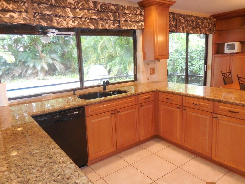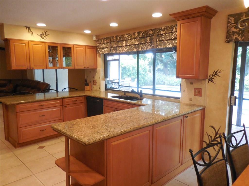 Loads Of Upgrading To This Privately Located Ambassador Model-'06 Stevenson Roof-'14 A/C-Baths And Kitchen Updated With Granite/Travertine/Custom Wood Cabinets/Fixtures-Knockdown-2nd Closet Added To Master-Lush Rear Yard Landscape-Motion Sensor Alarm-Garage Converted To Additional Living Space And Can Be Converted Back-Home Sold "As Is" With The Right To Inspect-Personal Property Not Attached To The Walls Is Excluded But Owner May Entertain Separate Offer For These Items
