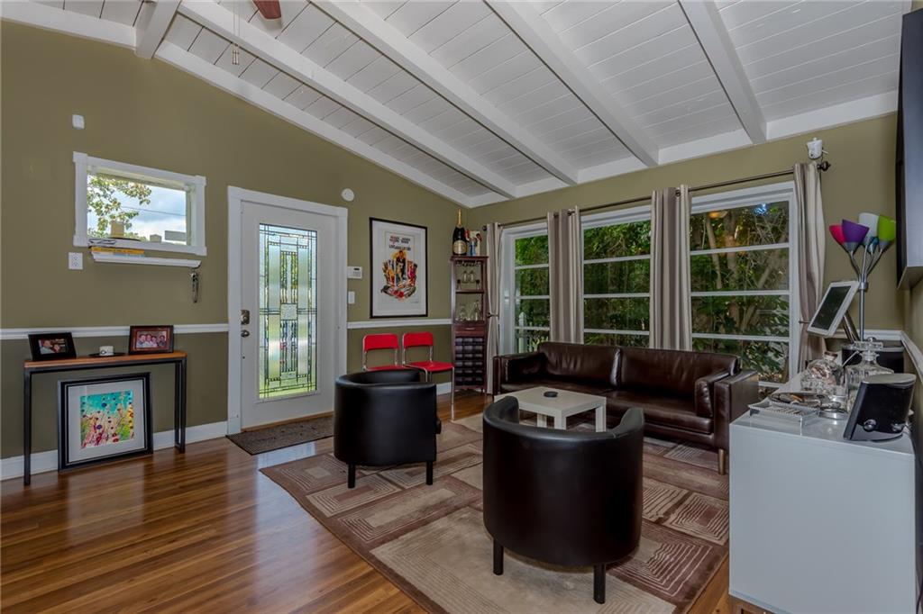 Welcome to Riverland community where you are just a short drive from highways, downtown & the beach. This home is move in ready & features 3 bds / 2 baths + a den * Beautiful vaulted ceilings with exposed wood beams * Lots of natural light * Laminate floors * Kitchen is open to a den & has stainless steel appliances & granite countertops * Separate laundry room with a storage* French doors from the den are leading to a spacious fenced yard with a patio* Newer roof * Sprinklers are on well. Priced to sell!
