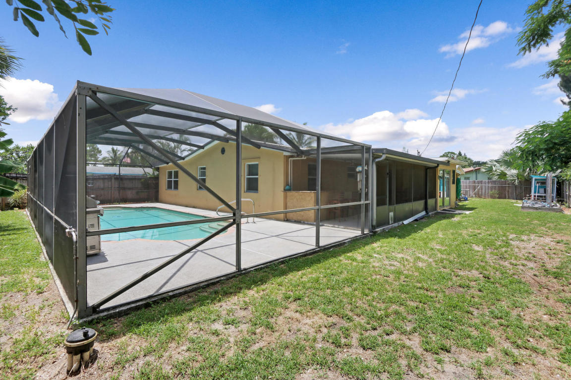Bring your kids, Your Pets, And Your Recreational Vehicles. This tastefully updated, 4 bedroom, 2 bathroom, pool home sits on large lot in quiet neighborhood just minutes to airport and easy access to I-95 and Turnpike. Boasts kitchen with wood cabinetry, granite counter tops and stainless steel appliances.Updated bathrooms, and large Laundry room and pantry off kitchen. Great screened pool and patio, totally fenced yard for privacy.Impact windows. Air conditioner 2014, Hot water heater 2013,Dryer 2016,Dishwasher 2016 , Variable pool pump 2015.Separate 12'x12' building perfect for workshop with water and electricity.And best of all No HOA. Perfect Florida home Priced Right!