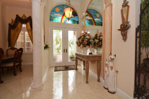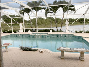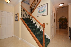 Fabulous 5bdr, 3 1/2 bath home with screened pool&spa,expansive lake views & no rear neighbors. Porcelain flooring throughout main living area & wood floors in all bedrooms. Crown molding. 3 way split floor plan featuring the master and 1 addtl bdrm downstairs & remaining 3 bdrms upstairs. Upgraded kitchen w/Wood & glass cabinets,granite counters. 2010 all New kitchen SS appliances. Brand New dishwasher. Large family room opens to kitchen and breakfast nook, all overlooking pool and lake views. Plantation shutters throughout home. The arched walls of formal living room feature upgrades like sculpted columns, iron gates, venetian plaster walls and 19 ft ceilings and arched windows. New washing machine. Accordion Hurricane Shutters. In-Wall Pest Control providing haggle free pest control!