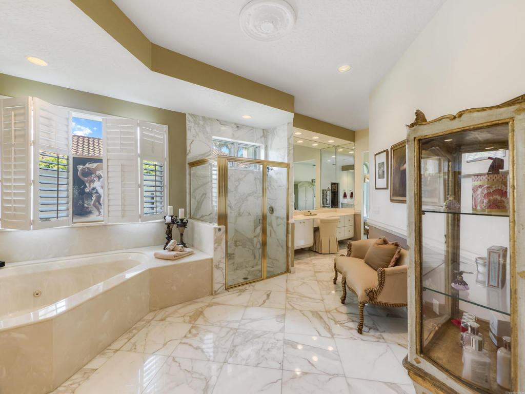 Ambiance and privacy are yours with this beautiful home, located in the most prestigious community, Breakers West. The peaceful security of a gated community, combined with the most convenient locations has made Breakers West famous for its relaxing quality of life. Perfectly placed on a spacious golf course lot, this custom 4 bedroom, 4 1/2 bath offers over 4,000+/- living square feet. Expertly renovated with today's sophisticated amenities, this home is move in ready. Amazing designer Pool with all new equipment & landscape lighting. Hand painted foyer with exquisite chandelier. This light filled, popular open floor plan with high ceilings thru out, crown molding, & marble flooring provide the perfect backdrop for any decor. Roof, Generator, A/C units are 8years new. Must See Value..
