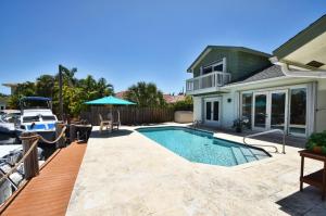 Rare deepwater (no fixed bridges) find-over 3000 sf of open living space with high ceilings and large scaled rooms. Grand foyer showcases soaring 18' ceilings and water views plus skylights for natural light. Large kitchen w/island opens to huge family room with 12' cathedral ceiling. Master suite with private balcony, hardwood floors, double closets, his/her bathrooms, double entry shower & separate tub. Oversized patio (30'X58') is a spacious entertaining venue & surrounds the large pool. Dock offers 45' of easy care Trex-type lumber. Bring your boat and start enjoying the waterfront lifestyle!