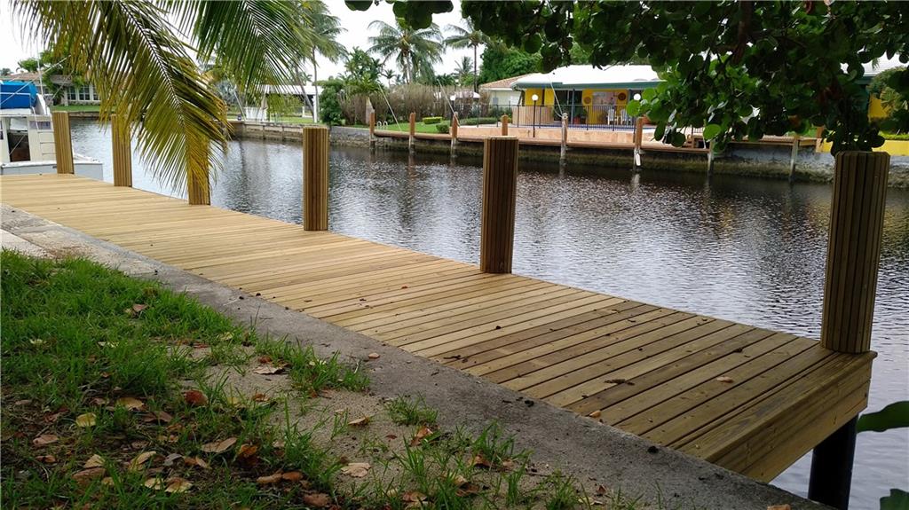 Waterfront property!! Magnificent modern house in immaculate turnkey condition.Direct ocean access with only one fixed bridge at Federal Hwy.Brand new roof.Gorgeous 32" porcelain tile floors throughout. 4 bedrooms, 4 full bathrooms, this home features 2,257 sq/feet under air, open concept, natural light, family room and dining area overlooking the canal, exquisite custom-made Italian kitchen, master suite with bathtub/ shower New wood 50X7 ft boat dock clearance of fixed bridge is 12.1ft Fenced backyard