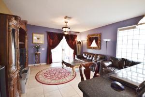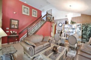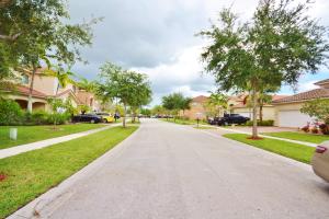 Beautiful home in gated community with soaring ceilings, 3 bedrooms on ground floor, large open loft upstairs can be easily converted into 4th bedroom like similar models, well kept by a loving family, move in ready! Great location. Close to airport and major roadways, City Place and Wellington Green Mall. Lawncare included in HOA fee. Tile throughout, private living room and family room open to large kitchen. Huge loft for media, and/or entertainment. Spacious home, the loft is perfect for a 4th bedroom, a home office and/or music room. Huge 2 car garage. Subdivision: pool, tennis bike, jog, clubhouse, basketball, exercise room, play area.