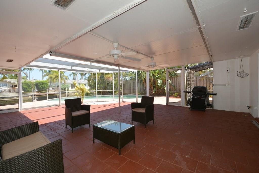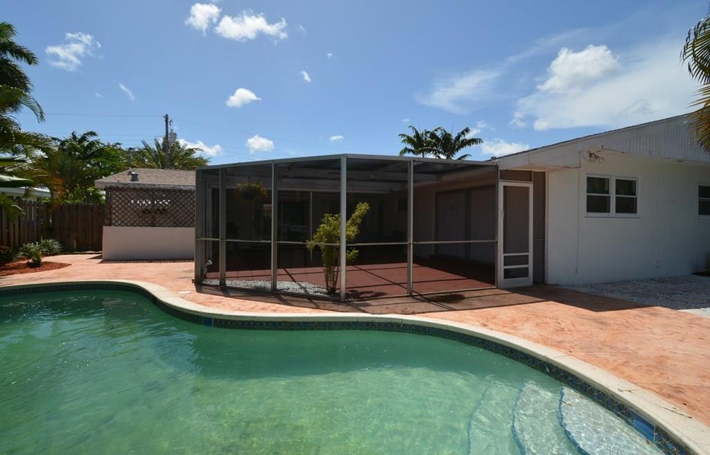 3 bedroom 2 bath home in highly desirable Coral Ridge Isles on the water! This property offers a large screened in patio that is perfect for relaxing or enjoying it with friends and neighbors. Float in the 12X15 pool and look out at the canal. The dock offers a boat lift and dock for your boat. With over 2000 sqft of living space protected with impact windows. The 3 bedrooms are of good size with plenty of closet space. Tile floor in updated kitchen and main living area, bedrooms wood laminate floor.