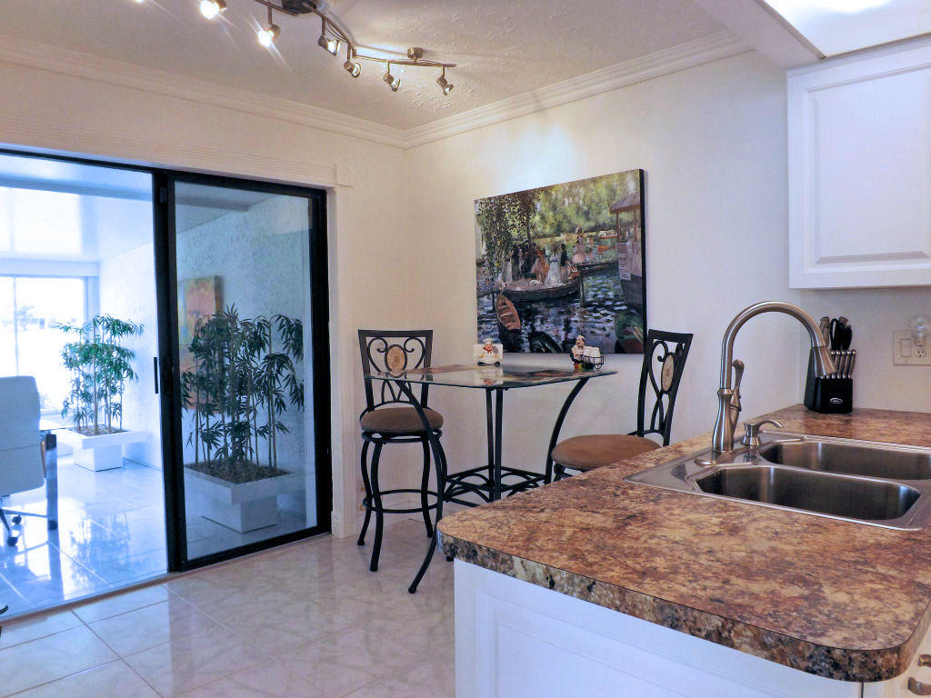 Location! Location! Location! Best wide panoramic lake views. Light and bright 3 bedrooms, 3 bathrooms. Large tile throughout living area, carpet in master and guest bedrooms. Additional 500 sq. ft. wrap around enclosed four season garden room with spectacular lake views that can be seen and accessed from living room as well as the kitchen. Additional balcony off the master suite to sit outside and enjoy lake view. Redone kitchen with new oven. Dishwasher and refrigerator replaced approximately 5 years ago. High ceilings, crown molding, and new baseboards. Large walk in closets in all bedrooms. There is one bedroom downstairs and 2 upstairs. A/C approximately 8 years old. This townhome has a wonderful use of space and is in wonderful condition.