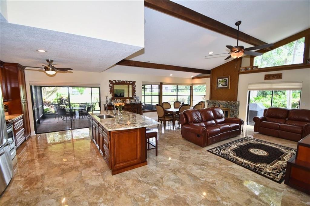 This remodeled cul-de-sac home is situated on a great lot in Escondido. Porcelain tile throughout open concept living space adds class to the kitchen which spares no expense. Elite SS applncs, pullouts, & a lrg granite island with lots of counter space. The granite flows into backsplash/baths/bar. Custom HunterDouglas blinds compliment the fireplace/wood beams. Enjoy golf course views on the covered screend patio. This family friendly home is mins from the T'pike. 24HR manned guard gate, A+schools
