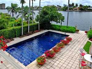 SOUTHLAKE WATERFRONT/ NFB to ocean, Custom 3br+den, 3.1 ba, A/C wine room, hardwood floors, elec. hurricane shutters, built-ins, gallery lighting, surround sound, gated motor court. Unique architecture, open design, clean lines & elegant stand-out features for sophisticated & relaxed living. Expansive great room, lounge, custom bar & intimate den/multi-media retreat for entertaining flexibility or casual comfort. Terraced patios extend living space. Island kitchen, Subzero, multi pantries, pullout storage & serving buffet. Spacious master bedroom, sitting area & private terrace. En-suite bedroom currently serves as office. Extensive use of glass & French doors unite modern gallery like interior with natural light & spectacular lake views making this home one-of-a-kind.