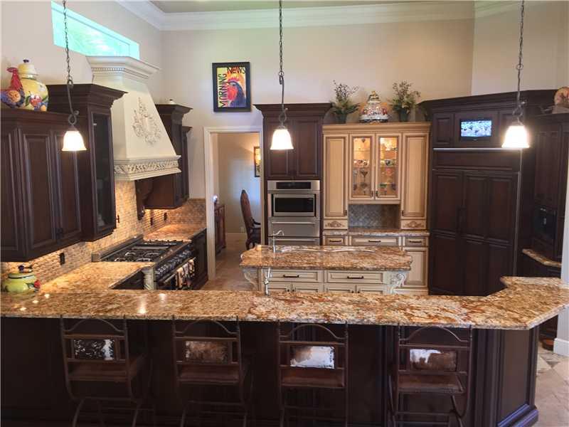 Gorgeous Lakefront Estate Home. Upscale/High end finishes through entire home. Pub style Bar/8 seat movie-Theater. A kitchen chefs would envy. Dual sinks, ovens and dishwashers/Miele coffee maker, and sub-zero refrigerator. All bedrooms include wood floor ing and 5 beautiful bathrooms with beautiful finishes. Tropical outdoor living which includes resort style pool with beach area and spa. Outdoor kitchen overlooking the lake. No detail has been left undone. The 5th bedroom is being used as an office.