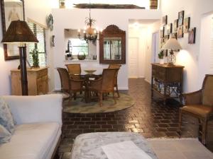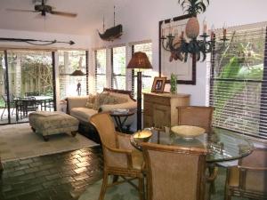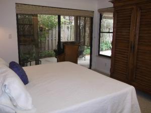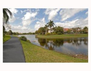 Beautiful one story detached home with a British West Indies flair. Boasts two masters, tile floors in living area, vaulted ceilings and split BR's. Light & bright open floor plan with expansive views of the tropical courtyard. Open kitchen with lots of light. Front load W/D. Lushly landscaped courtyard offers plenty of room for additional outdoor living space. Two car garage, 24 hour manned gate & community pool & spa. Best town center location. Walk to tennis, shops, restaurants & more. One pet up to 50 lbs or two small. Monthly fee includes cable, 24 hr manned gate, common areas & front landscaping. Yearly master association fee $98. Excludr DR chandelier. Close to I95, Turnpike, universities and beaches. NO trucks/motorcycles.