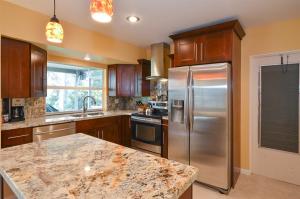 Charming, updated home with desirable East Boca location near Old Floresta historic district. Kitchen beautifully renovated in 2012 with wood cabinets, granite, and stainless steel appliances. Larger stone-look tile throughout - no carpet! Fabulous, upgraded & expanded master bathroom with double sinks and seamless shower door. Door to smaller third bedroom has been removed and room most useful as den. Huge patio overlooking tropical paradise - perfect for relaxing and entertaining with amazing privacy. Enjoy the tropical fruit trees - Papaya, Jack fruit, Mango and more! Oversized garage with extra storage. Fantastic location - walk to shopping, close to downtown, beaches, new library, Mizner Park, restaurants, shops. All ''A'' schools - Addison Mizner Elem, Boca Middle and Boca H