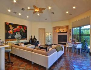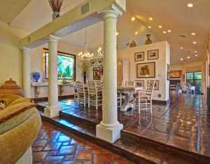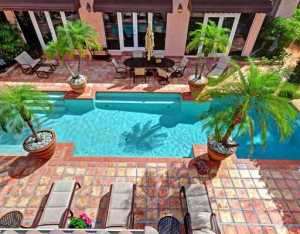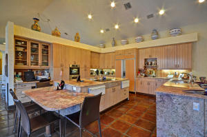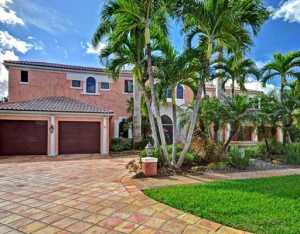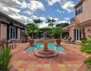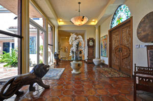 ESTATE SALE. Spanish/Mediterranean design two story, courtyard home with S-tile roof, elevator, impact glass windows, and generator The back of the house faces due south and the front faces north. There is glazed Spanish tile flooring throughout, with each room having a different patterned tile. In entry area there are custom hand carved doors & cast stone columns. Off the entry & living room, there is a powder bathroom, with separate men's & woman's powder rooms. Spiral staircase leads to the second floor. Separate raised dining room area steps down to a living room with a wood burning fireplace with extensive use of stained glass in the living room & dining room area. Walls have stucco application throughout the house.