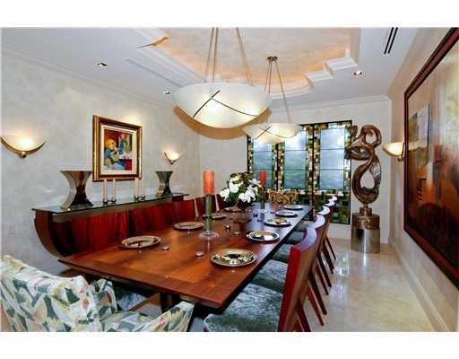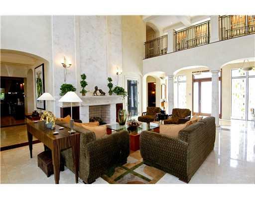 Upon entering this luxurious home, you are met with a spectacular inlaid multi-wood medallion, saturnia marble floors, and a geometric coffered ceiling with a stained glass lighting centerpiece.Stunning finishes & custom designed furnishings are throughou t this home.Fabulous amenities include a full theater, bar, elevator, & full summer kitchen.The garage has high ceilings offering space for lifts & a total of six cars. There is also a designated parking spot for the limousine! 95' of prime waterfrontage!