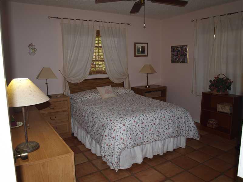 Country Ranch Estates home on 1 acre, 3 bedroom/2 bath with a wood burning fireplace in the living room. Kitchen has an island & breakfast area. Family room can be used as a playroom or office. Beautiful Mexican tile floors. Large Master bedroom w/2 clos ets. Most closets have organizer systems. over sized covered porch to enjoy the view of garden & canal. This property offers oak trees & mature landscaping, also includes 2 shade houses for orchids/plants. New AC unit in 2013. Great opportunity!