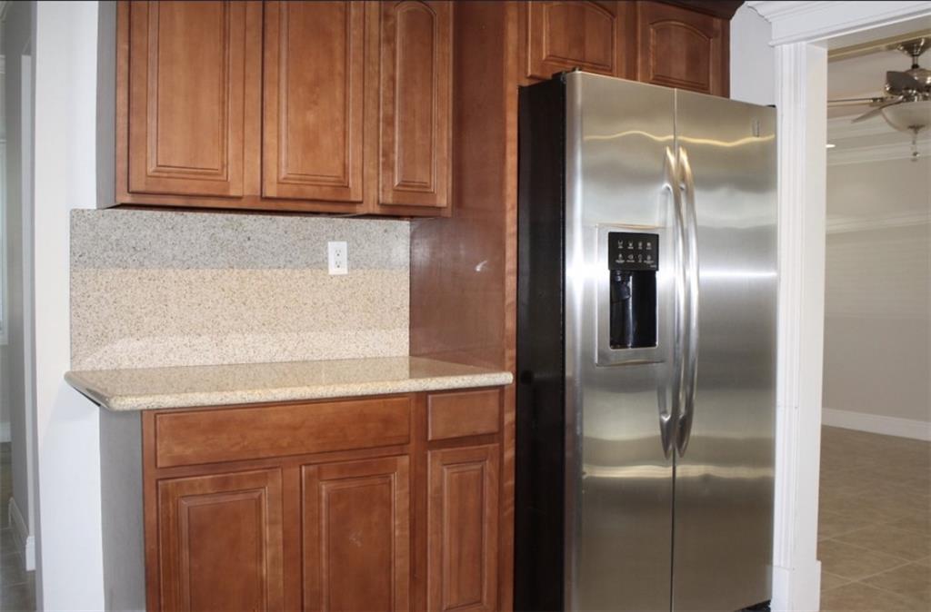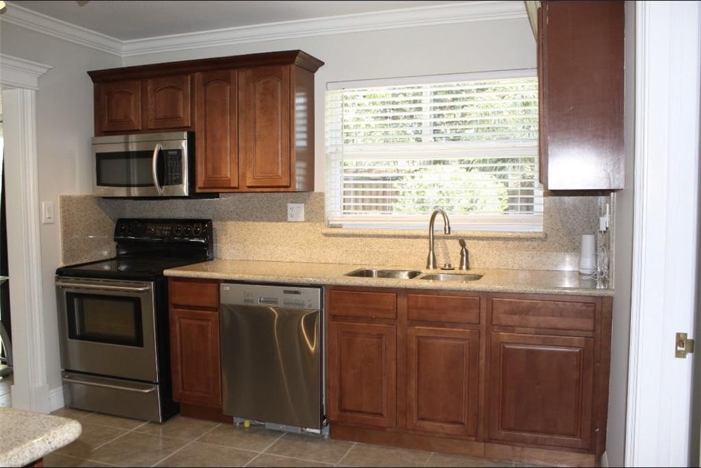 Tastefully remodeled 3/2 with all the amenities including stainless appliances,tile flooring, granit counters both kitchen and bathrooms. Extensive upgraded trim and crown moldings.Secluded master bedroom with Jacquzzi tub and frameless glass shower with double bowl sinks. A grand tropical back yard includes a large paver patio with a beautiful stone waterfall. A short walk down a natural stone path brings you to a secluded corner yard beach scene with white sand and a built in fire pit for a perfect entertain party. Underground 4 zone sprinklers for the luscious landscaping including drip lines under plant bases. Large lot slightly under 1/4 acre with mature trees.