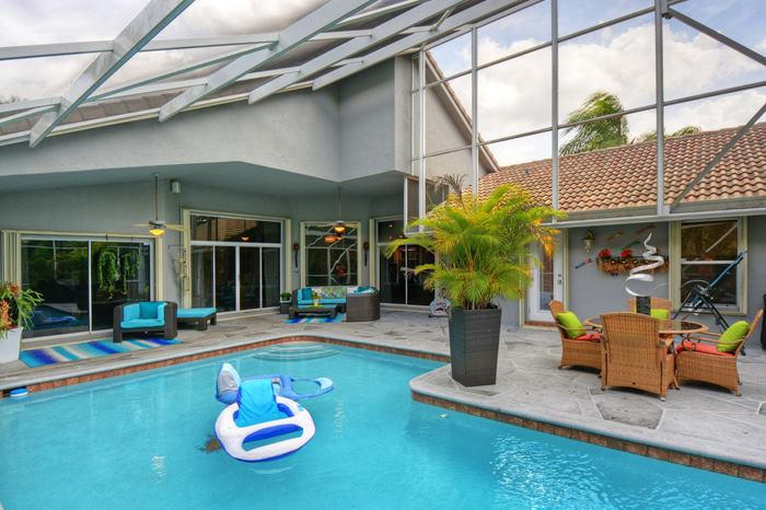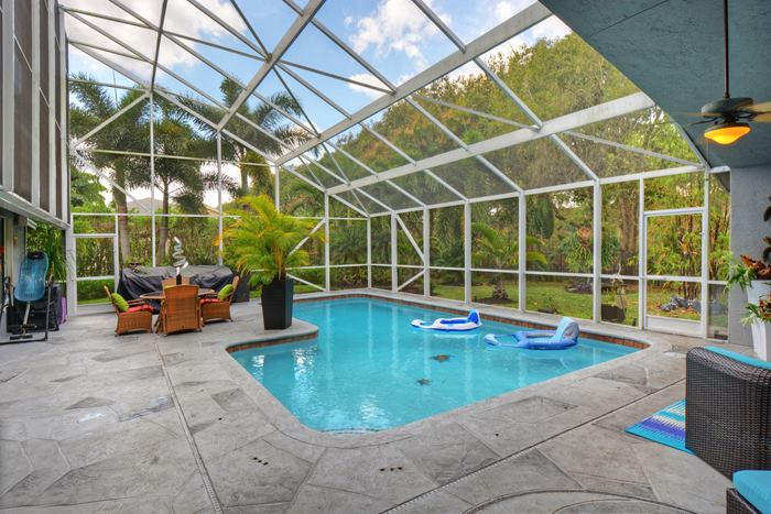 OPEN HOUSE THIS WEEKEND! 7/12&13TH BRING ALL OFFERS! BEAUTIFUL HOME AND LOT! THIS HOME WILL SELL FAST.5 BEDROOM,3 FULL BATH HOME IN PRESTIGIOUS EAGLE TRACE IS BUILT ON AN OVERSIZE LOT,(1/2 AN ACRE)ON A CUL-DE-SAC, WITH ABSOLUTE SERENE PRIVACY!!NO NEIGHBORS BEHIND YOU! STEP INTO YOUR LUSHLY LANDSCAPED BACK YARD, LEADING TO YOUR OWN PRIVATE NEW DOCK W/BOAT RAMP. HANG OUT FISHING FOR THE DAY OR TAKE A RIDE IN YOUR BOAT! THIS HOME FEATURES A SPACIOUS ENTERTAINING AREA WITH ON OVER SIZED SCREENED LANAI SOARING SKY HIGH, BEAUTIFUL POOL W/BRAND NEW POOL PUMP! ENJOY FRIENDS AND FAMILY IN THE PERFECT LAYOUT FOR ENTERTAINING, FEATURING NEWER STAINLESS STEEL APPLIANCES, INCLUDING A B RAND NEW REFRIGERATOR, GRANITE COUNTER TOPS, PLENTY OF STORAGE AND RECESSED LIGHTING. ALL NEW, STUNNING LIGHT FIXTURE