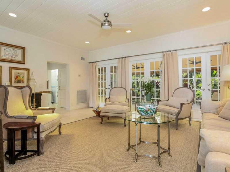 Impeccable Mediterranean revival with soaring cathedral ceilings compliment a flowing layout of living, dining, & family rooms leading to a spacious patio with summer kitchen & lush tropical gardens. Large master bedroom en-suite is located on the second level as well as a 2nd bedroom. 2 bedrooms are located ground level with a large bathroom to share. The 5th bed/guest quarters has a private entrance. New par 3 golf course directly across the street. Walking distance to Lincoln Rd & beaches.