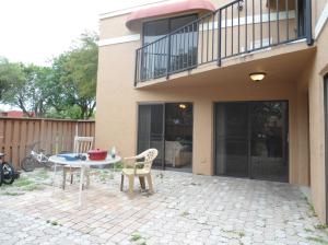 Courtyard style, fenced with pavers, great for grilling and outdoor fun. Rare 3 bedroom 3 full bath townhome with no rental restrictions and allows pets (except for aggressive breeds). One bedroom, one bath on the first floor. 2 master suites upstairs. Unit needs a little lovin' to make it shine. Great location, walk to elementary school. Within a few miles of I95, and the turnpike. Nice clubhouse, pool, tennis and gym with sauna and steam room.