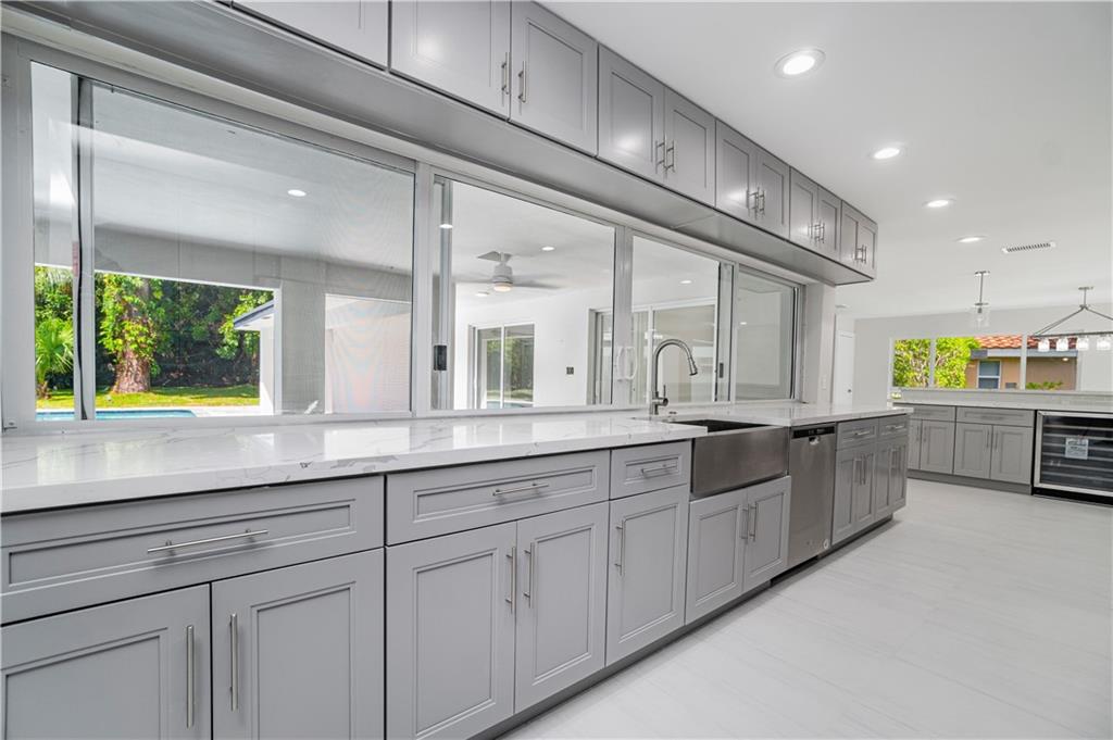 Welcome home to this once in a lifetime opportunity that is a guaranteed hit! BRAND NEW EVERYTHING inside and out! Walk in and find beautiful, oversized porcelain tiles wall to wall throughout entire house. HUGE kitchen with built in bar, NEW stainless steel appliances and wine cooler. NEW Calcatta Marble countertops installed in kitchen, baths, and laundry room. NEW impact doors and windows. Two (2) NEW Trane A/C units with Nest thermostats. NEW marble circular driveway and pool deck. This house also comes with a bit of character! Master suite has luxurious spa inspired master bath. Barn doors in master suite and bedroom closets. Original stone wall, fireplace, and ceiling beams with updated touch! Buyer can design own custom closets to be installed by seller with full price offer!