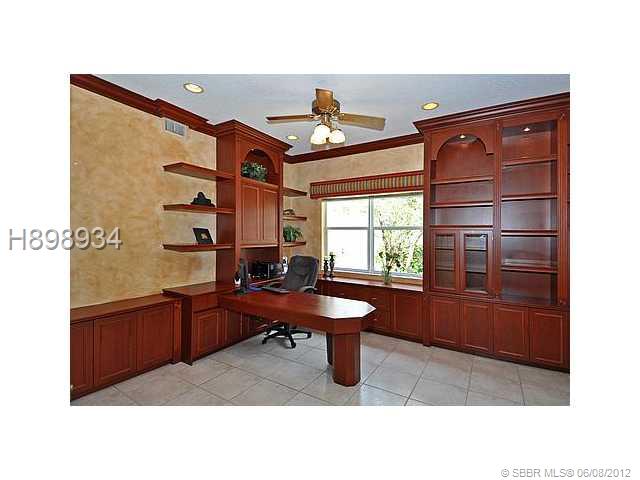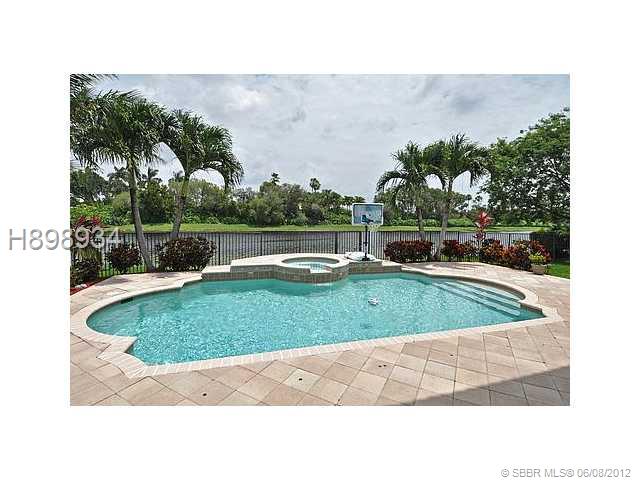 Beautiful Landmark Built Home in highly desireable Jasmine Island. 4 bedrooms PLUS Office with built-ins. 3 1/2 baths and a Den with a/c in the garage. May be used to store valuable memorabilia without worry of humidity. Large Master with sitting area and covered balcony. Kitchen and Master Bath have been updated. Gorgeous pool area overlooking water and lushly landscaped berm. Shutters and Alarm System. A GREAT FAMILY HOME!! According to the Blder's Floor Plan LA is 3130 and Total Area is 4436.
