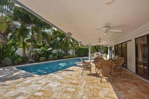 Extremely well maintained one story home featuring 3 bedrooms, 2 full baths + office. This home features, neutral tile floors, upgraded neutral carpeting, custom wood ceilings in family room, French doors, & a coral stone fireplace. The master bath has been completely renovated with dark wood cabinetry, Jacuzzi spa tub and steam shower. The formal living room opens directly to formal dining area with a stunning view of the private backyard. Lush tropical landscaping define the impeccably groomed grounds served by a custom pool & brick paver patio. 500 gallon propane tank & Hurricane shutters make this home complete. The Colonnade offers a children's playground, tennis courts & basketball courts all among a park like setting. Great central Boca location w/ excellent public & private schools
