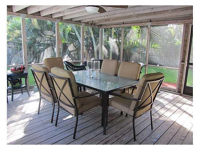 Charming front porch overlooks one of the neighborhood`s best streets. Nantucket-style outdoor space perfect for year-round Florida entertaining. Oversized pool with lush landscaping. Updated kitchen with new granite and stainless steel appliances. Spacio us Master Bedroom with vaulted ceiling. Remodeled guest/2nd bathrooms. Tile roof 2002, flat roof 2010, A/C 2006. Circular driveway with boat parking. Hurricane shutters for all windows Security system with motion detector.