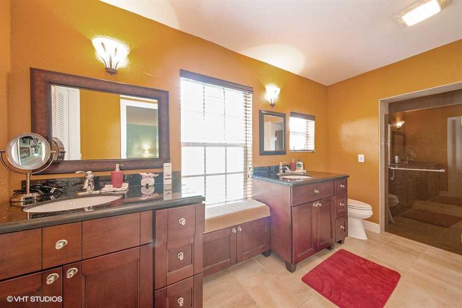 Luxurious and captivating one story home in the heart of Boca Raton. Walk into a spacious vaulted ceiling living room and granite top wet bar for entertaining, oversize dining room next to the open kitchen with 42' top cabinets and granite counter tops. R emodel breakfast area with black granite. Oversize master bedroom and remodeled master bathroom featuring dual sinks, jacuzzi tub and separate shower. The only house with an extra large family room and full bathroom added with permits. New roof, low HOA.