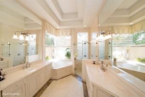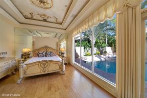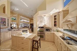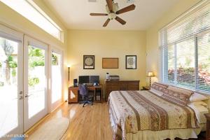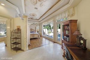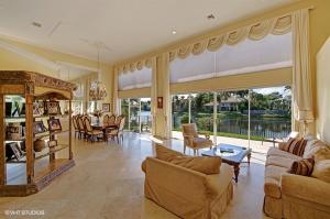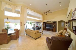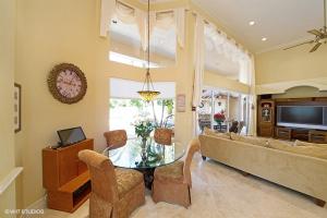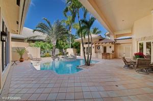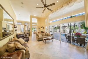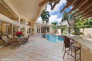 Former Seasons model with a spectacular view of lake that spans the entire living room & dining room area. Come experience this updated, single story, courtyard home with 4 bedrooms, 4 full bathrooms on a cul de sac street. High volume ceilings enhance the bright and spacious feel of this 3,247 sq. ft. home under air. Beautifully renovated kitchen includes granite countertops with center island, stainless steel appliances, custom ventilation hood, two sinks, and a wine cooler. Split plan with Master, 2 bedrooms and three full baths in main house. Separate guest house with bedroom and full bathroom. All bathrooms have been updated. Heated pool, spa and summer kitchen perfect for outdoor entertaining. Rear yard can accommodate a children's play set and pets. Home located close to clubhouse