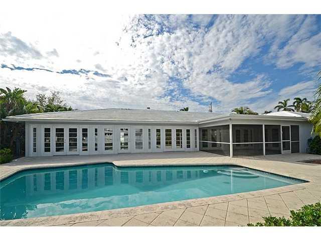 Charming, mid century home in the heart of Coral Ridge with 100 feet of deep water & four lots from the point. Double sided fireplace, french doors opening to a beautiful pool/patio, dual master suites, spacious two car garage and a central vac system are some of the unique features to this one-of-kind residence. Elegant landscaping, new private boat dock and an open/airy floor plan complete this tropical retreat. Best waterfront value in Coral Ridge and with a few updates, this home will be exquisite.