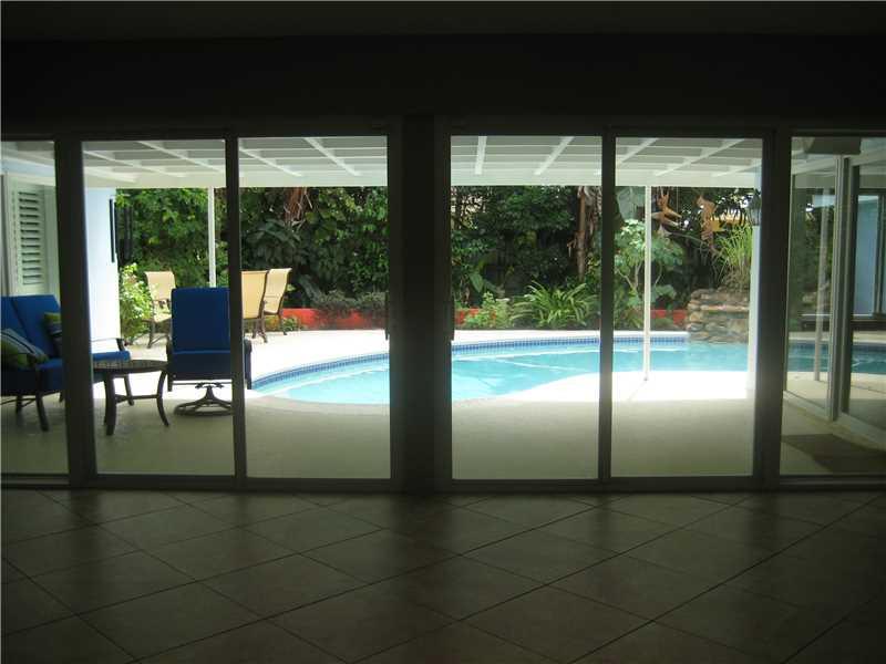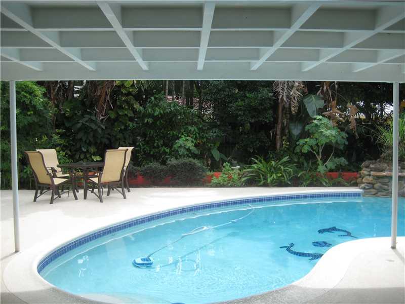 Fully updated pool home surrounded by tropical, mature foliage. New metal roof in '07, new A/C in '10, & all hurricane resistant windows/doors. Five sets of sliding glass doors to rear pool and patio. You'll love to cook in the large, open custom kitch en with long center island, Subzero fridge & 2 ovens. Master bedroom w/custom built-in cabinetry in the large bath & in the oversized walk in closet. 2nd Master bedroom on opposite side of home, 3rd bedroom w/ Murphy bed & built in desk used as office.