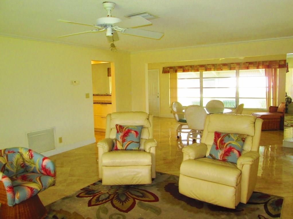 Fabulous LEISUREVILLE 55+! Sought after largest Attache model w/ outstanding open garden view. Every room top-of-the-line renovated: 24" tile, crown moldings w/ hi baseboards, granite/stainless kitchen w/ double oven range, high-end cabinetry, breakfast bar, under cabinet lighting & more! Stylish & modern bathrooms, simply the best. Tank less hot water. Fresh paint top to bottom. Great storage, Covered Back patio, Garage & double cement driveway. See it is to love it-you can just move in. NO LAND LEASE.