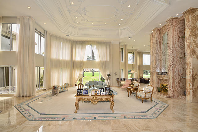 Spectacular, elegant, and expansive two-story 9-bedroom home on a beautiful DOUBLE lot (only 1 club membership required) with Southern backyard exposure. Exquisite architectural details throughout, dramatic entry, gorgeous ceilings, stunning fireplace in living room, and more. Open floor plan, floor-to-ceiling windows in every room, large en-suite guest bedrooms upstairs and down. Extra-large master suite is on ground floor with generous closets plus a sauna. Bright island kitchen (plus prep kitchen) open to family room, breakfast area, and enclosed air-conditioned sunroom overlooking stunning pool and patio with great golf course views.
