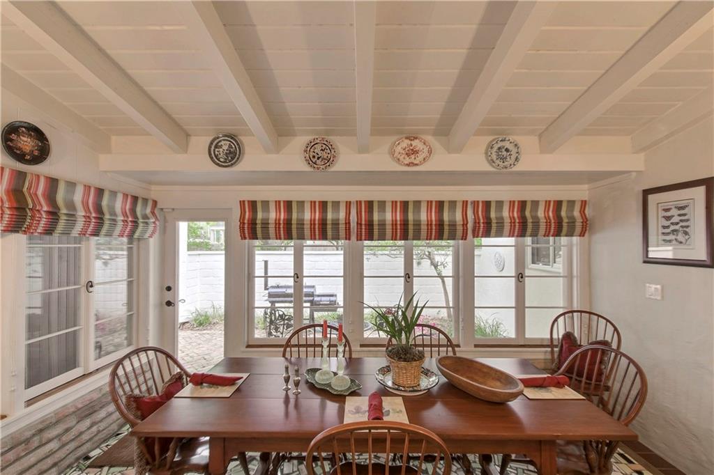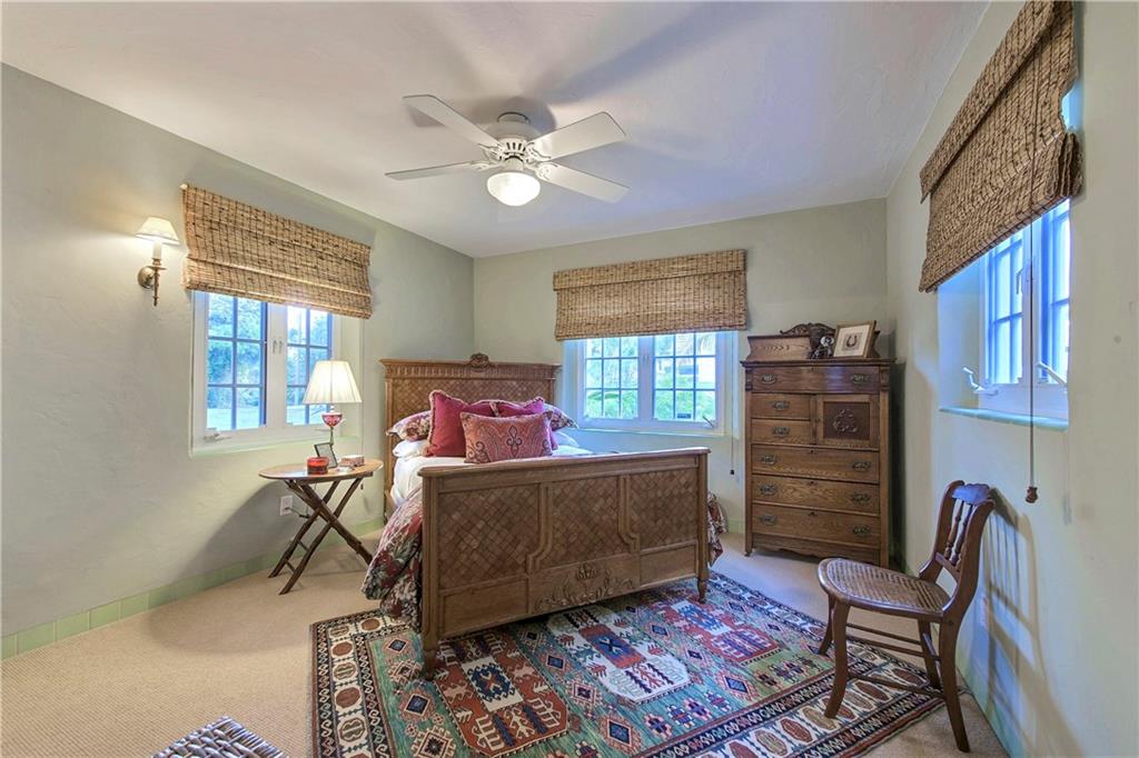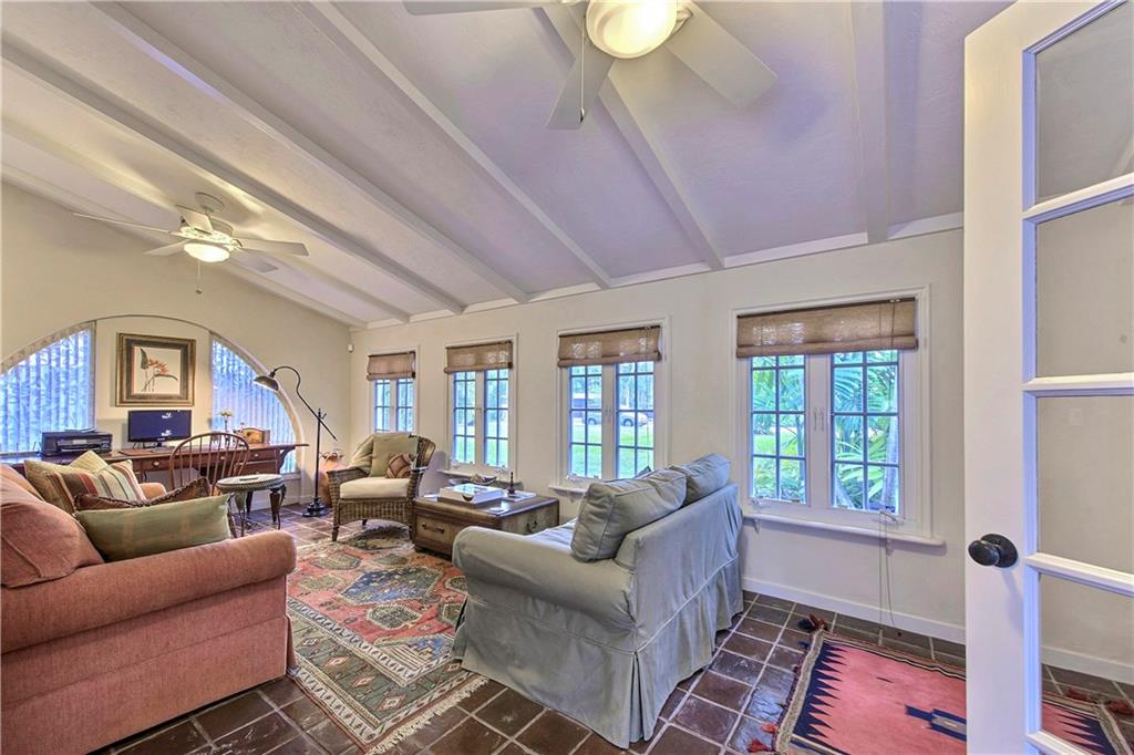 Authentic 1930's Mizner-like design offers thick stucco walls, colorful glazed Cuban tile floors, beamed vaulted ceilings, a wood burning fireplace and a gated portico entry. Carefully updated, restored and renovated this home boasts a formal foyer, a private bank of guest rooms, a secluded master and two well-proportioned lounges for entertaining. The dining room with vaulted ceiling offers a wall of windows that face a secluded courtyard terrace. Situated on a 145x75' lot and only steps to Las Olas