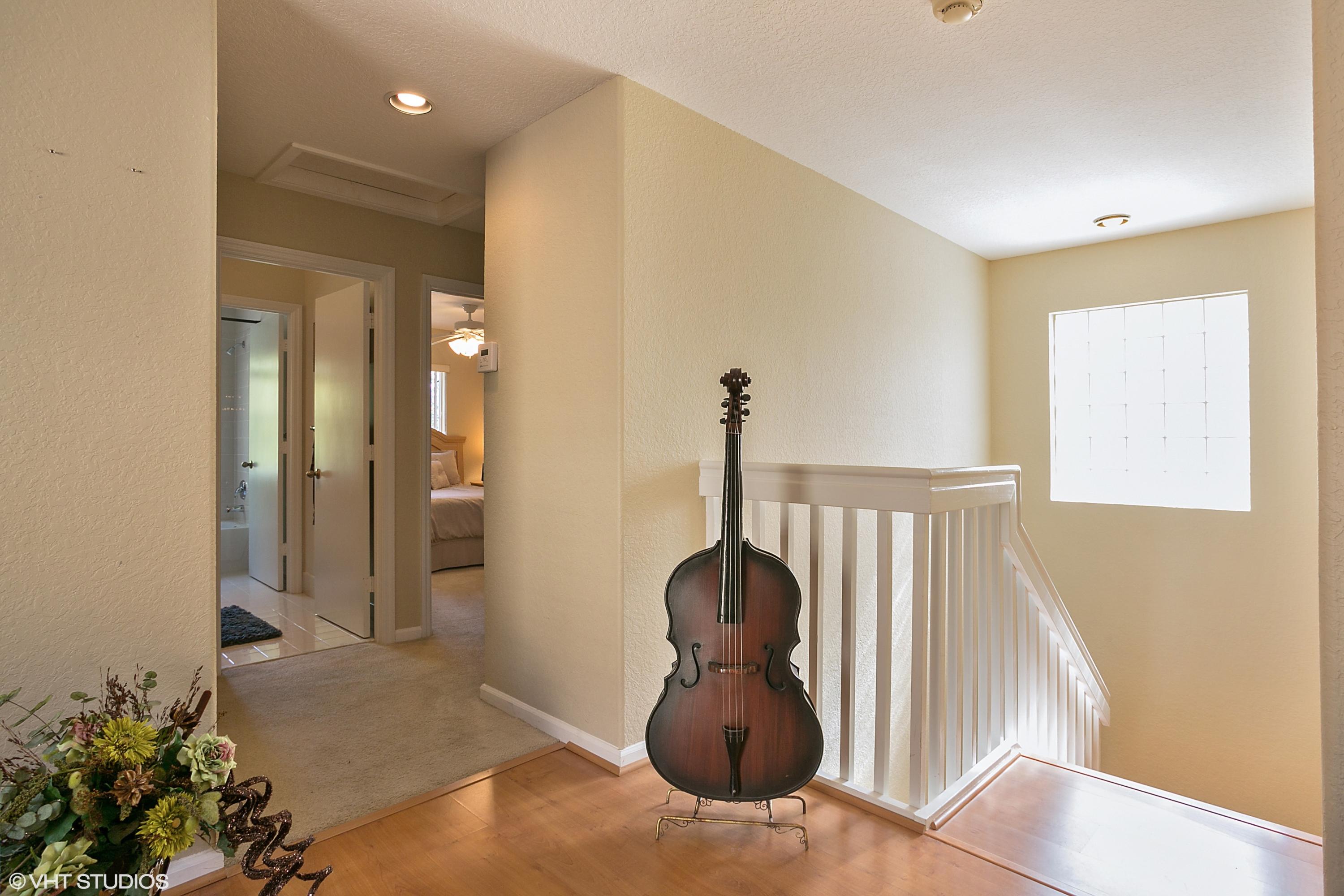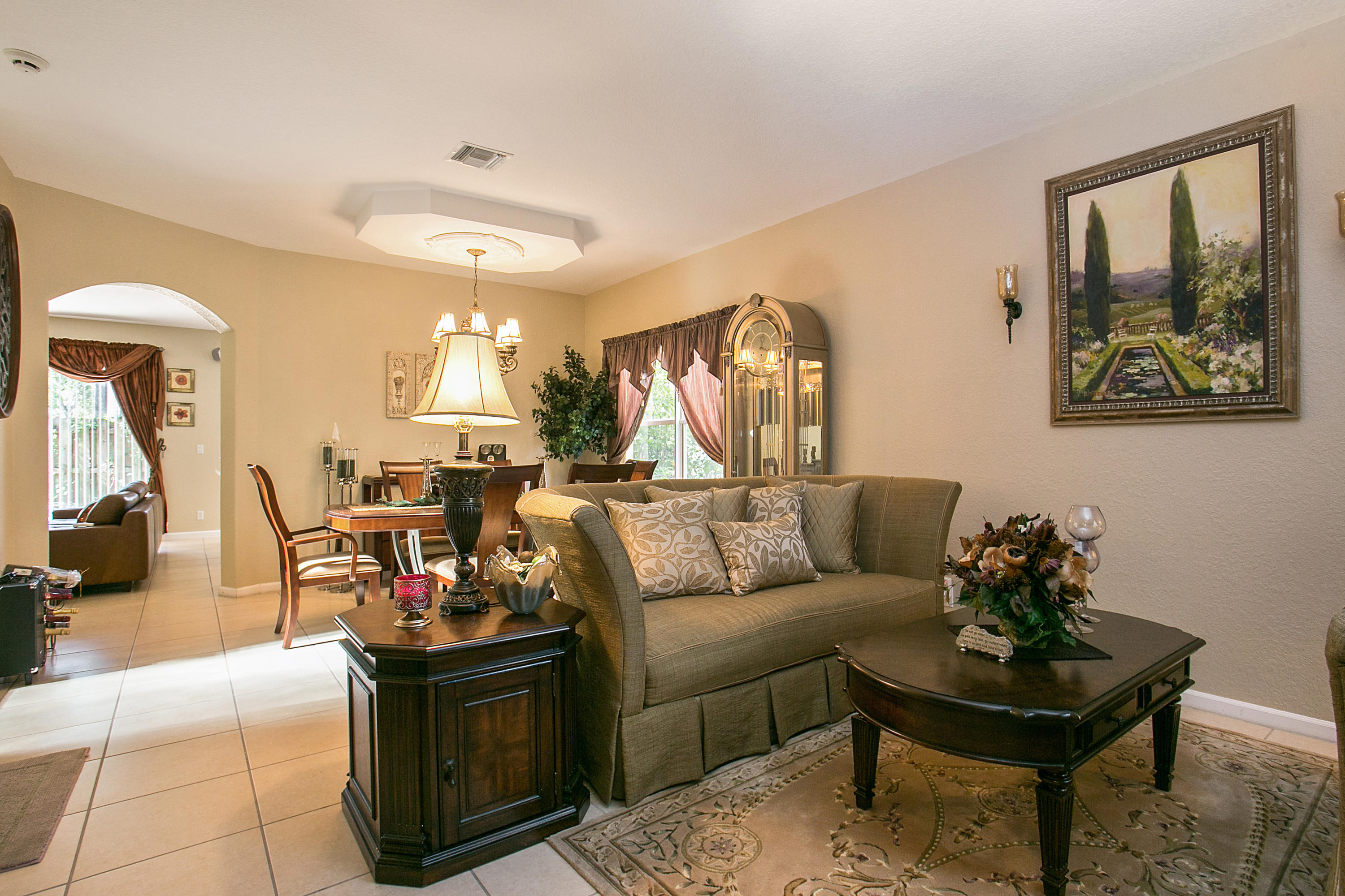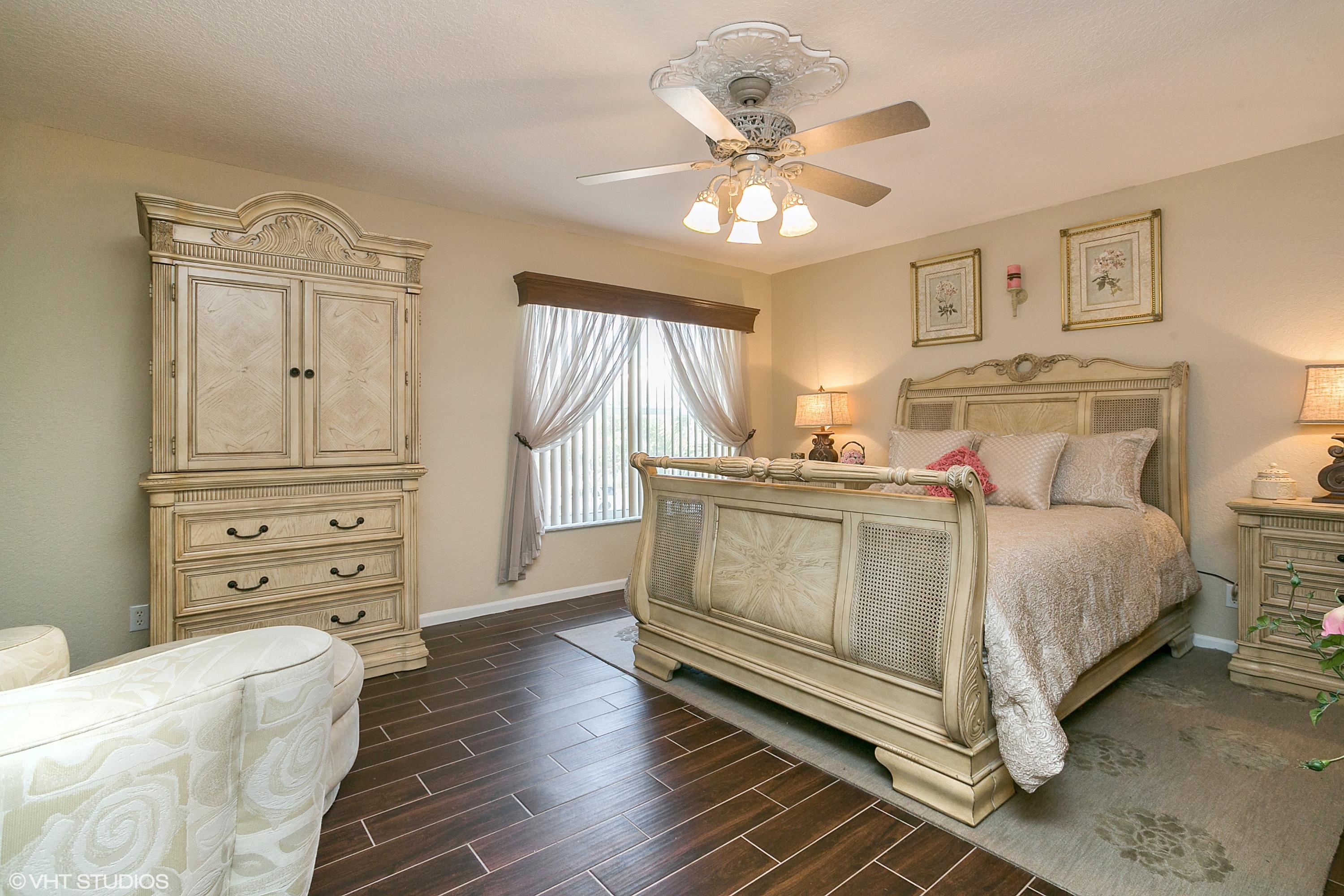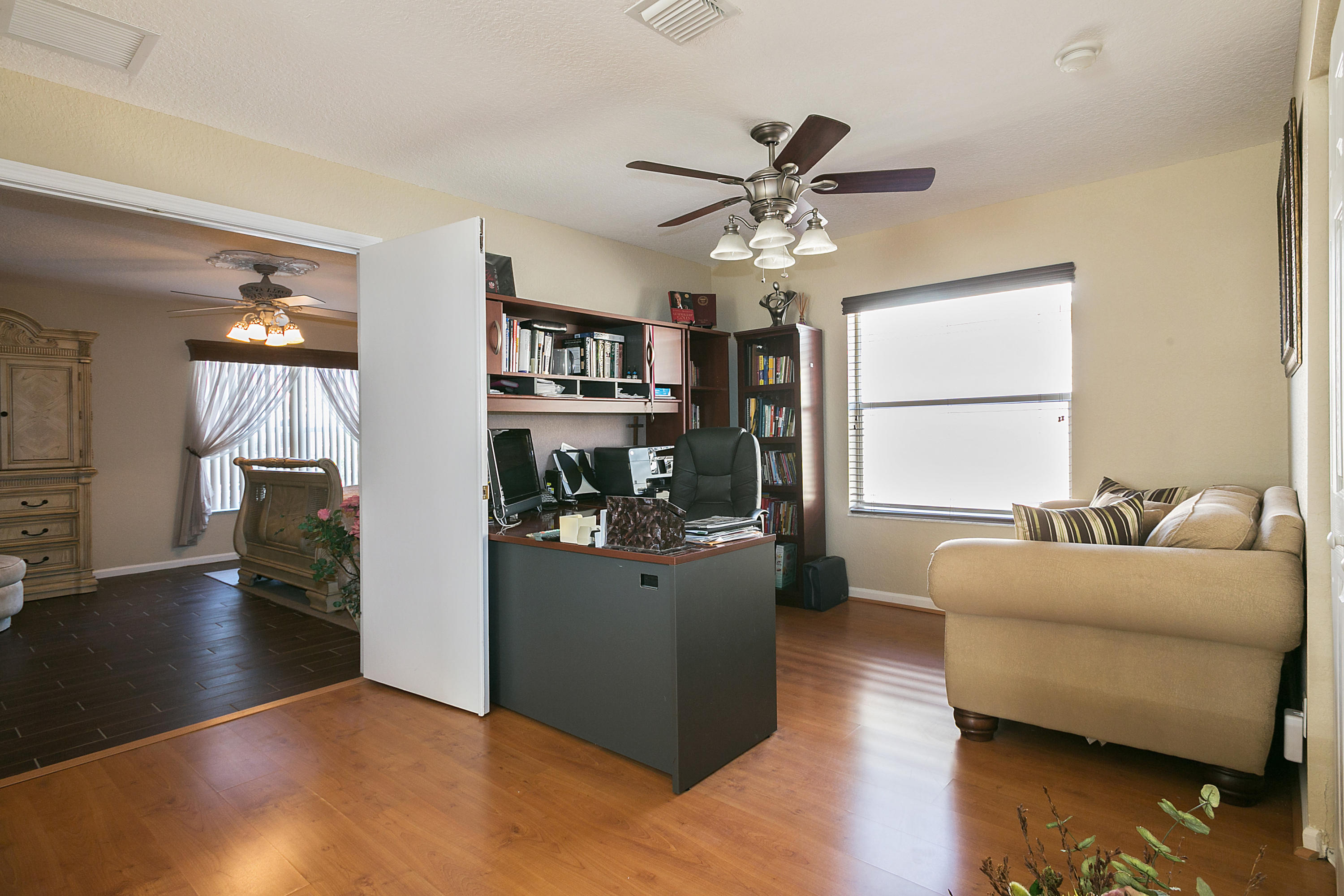 Well maintained 4/2.1 with attached garage. Nice deck in backyard with privacy fence. No neighbors directly behind house. First floor tiled throughout formal living/dining and family room with open kitchen and breakfast nook. Laminate flooring on the stairs and second floor loft area which could be a fourth bedroom. Guest bedrooms are carpeted, double sinks in second floor guest bath. Master bedroom has double entry doors and wood tile flooring. Family room prewired for surround sound. Hurricane Panels. Community Pool is a short 2 minute walk. Chandelier in dining room does not convey. Master bedroom and office furniture available.