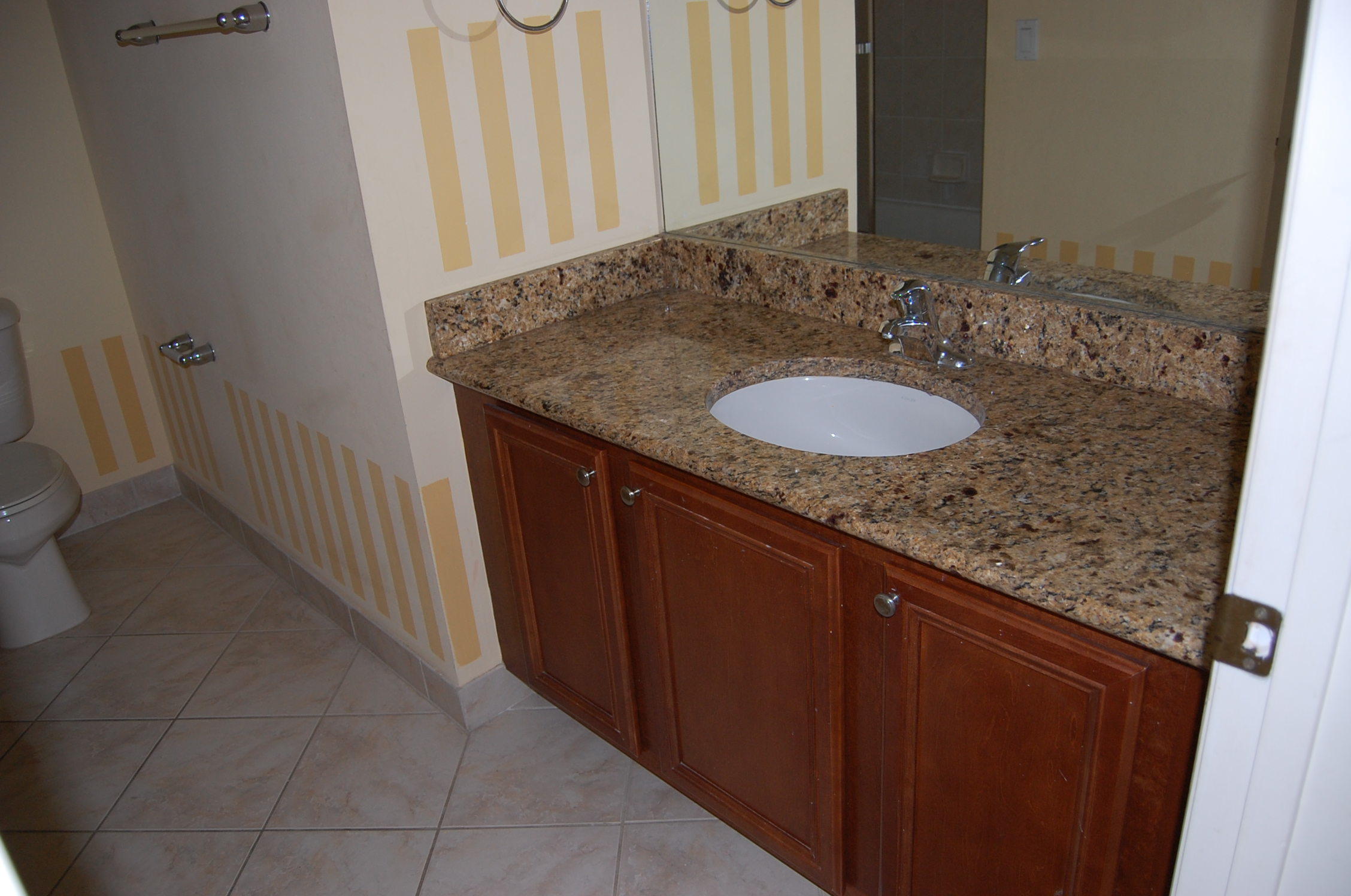 Gorgeous 3/2.5 townhome in desirable Boca Raton community of Royal Woods. Beautiful new tile flooring downstairs, large kitchen w/ granite counters and breakfast bar, stainless steel appliances and laundry closet. Wonderful open floor plan with half bath downstairs, great for entertaining. NEW AC installed June 2016. New laminate floors upstairs. No carpet! All 3 bedrooms are upstairs. Master has double closets and en suite bathroom. Community offers pool, bike path and tot lot. Don't miss this great opportunity to own a 3 bedroom home in Boca!