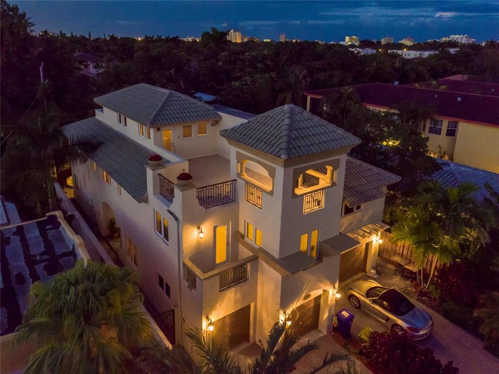 Beautiful corner private townhouse in Victoria Park. Light & Bright. Great open floor plan. Enjoy the large rooftop terrace with amazing views of downtown and east toward the beach. Tropical backyard with Jacuzzi and walled in for privacy. Pet friendly. 2 master suites, wood floors, natural gas cooking, 2 car garage & more. Great street and location. Walk to Las Olas, restaurants & shops. No HOA fees. A must see.
