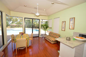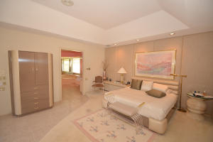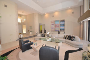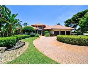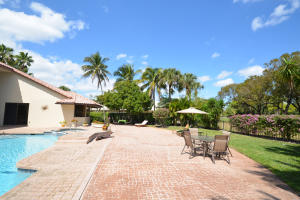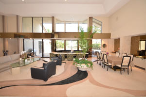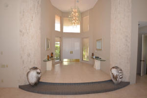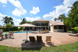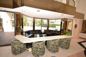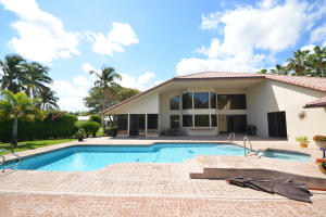 Magnificent one story corner lot on over 1/2 acre lot with 3 bedrooms & 4.5 baths. As you enter this sprawling beauty boasting a huge living room with wet bar, high volume ceilings, loads of glass windows, the first impression is WOW! The kitchen with a cooking island has been updated, cabinets, granite counter tops, SS appliances and wood floors. Split bedroom plan each with a private bath. Set on a property that looks like an estate is the patio and large resort style pool & spa overlooking beautiful golf views! Newer Spanish tile roof. Bocaire CC, newly renovated, state-of-the-art clubhouse, offers golf, no tee times necessary, tennis, fitness center, exquisite dining facilities. Mandatory initiation fee $30,000 & equity $60,000; 80% refundable.
