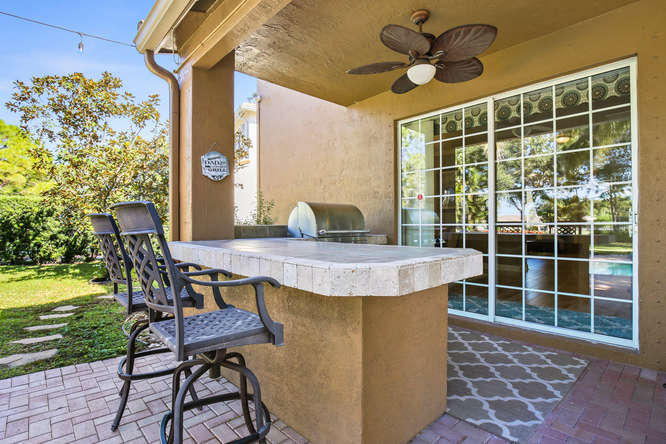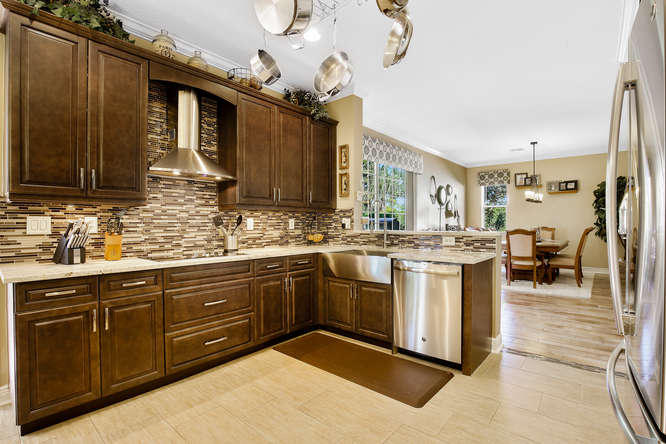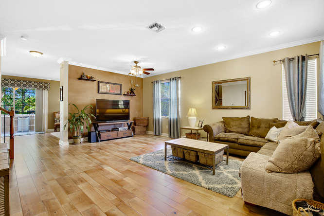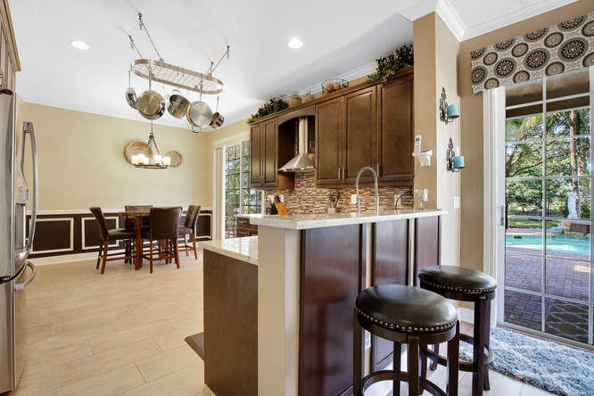 Beautiful 4 bedroom 2.5 bath pool home situated on an oversize waterfront lot. The first floor features the living space which includes a large family room, dining area, gourmet kitchen with breakfast nook. Throughout the living area are hardwood floors, crown moulding, decorative lighting and ceiling fans. The kitchen is a chef's dream complete with stainless steel appliances, luxurious wood cabinetry, granite countertops, farm sink, decorative backsplash, wine fridge and oversize tile flooring. The upstairs features all of the bedrooms. The master suite features a large bedroom, his and hers walk-in closets, spacious master bath with dual sinks, large shower, roman tub and decorative lighting. It also has bonus room that can be an office, sitting room or exercise room.